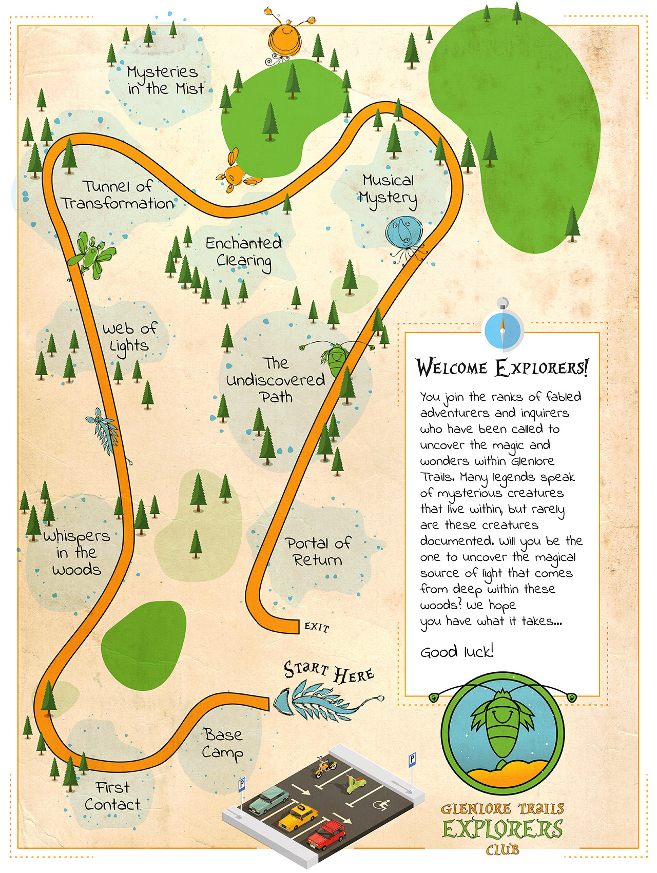 Glenlore Trails is a technology-infused, artful, immersive half-mile experience in Commerce, MI. As Creative Director, I was responsible for brand development, character creation, sound design, motion graphics support, graphic design support, and creative direction.